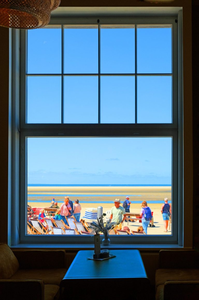 Gli spettatori vedono un mondo colorato di cielo, sabbia e mare – un palcoscenico dove le persone diventano protagonisti e comparse. Il movimento e l’immobilità si fondono: il gesto fugace, l’attesa casuale, congelati come in un dipinto.